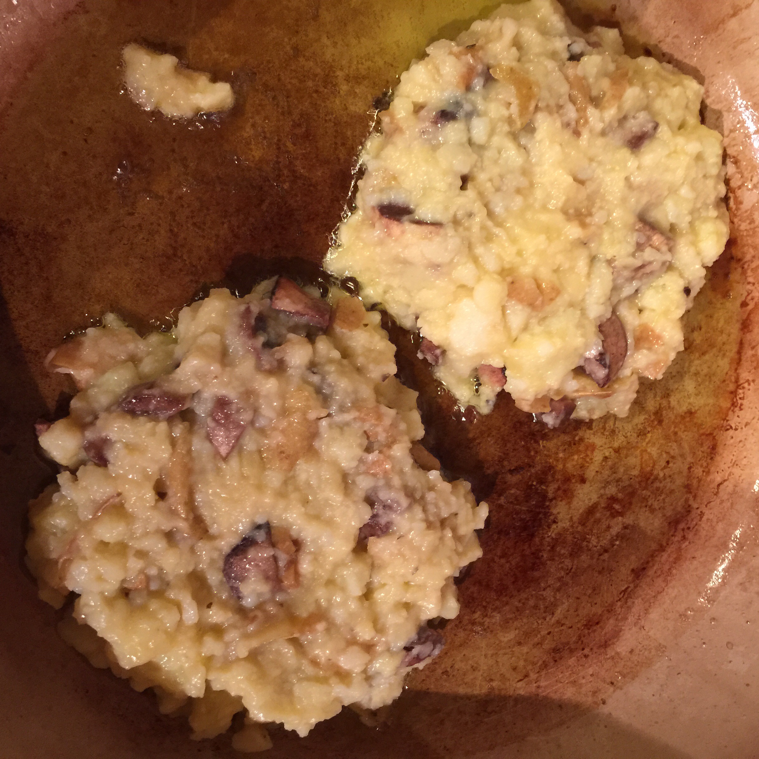 The potato patties were leftover mashed potatoes I mixed with two eggs and fries in olive oil