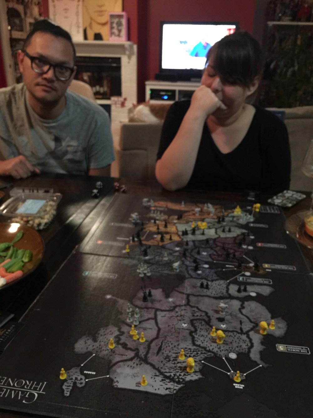 Game of thrones risk and snacks…gluten free vegetarian finger sandwiches I might add.