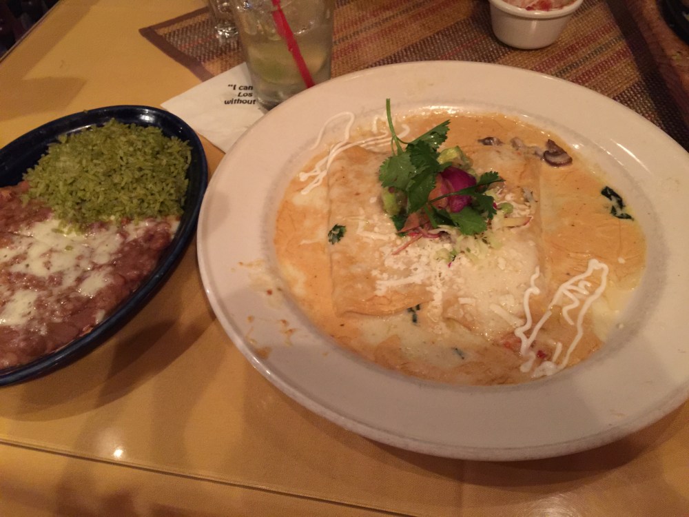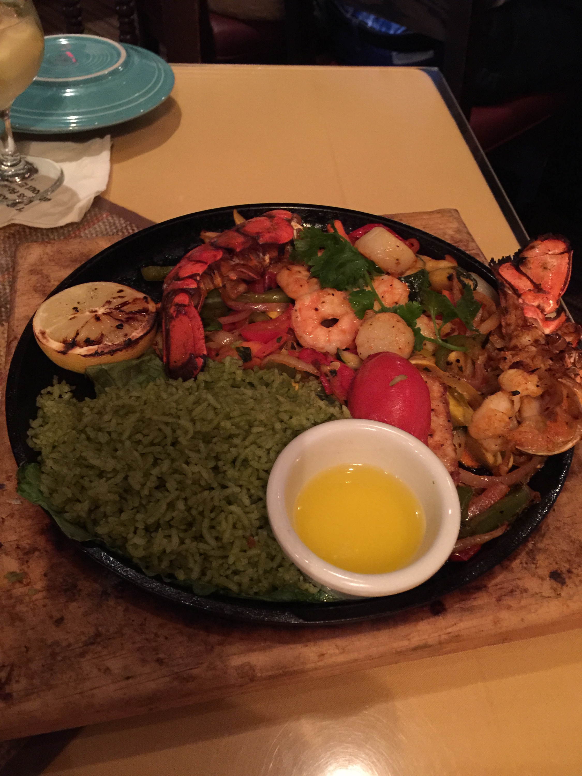 Enchilada mariscos for me….lobster scallop and shrimp with a nice sauce