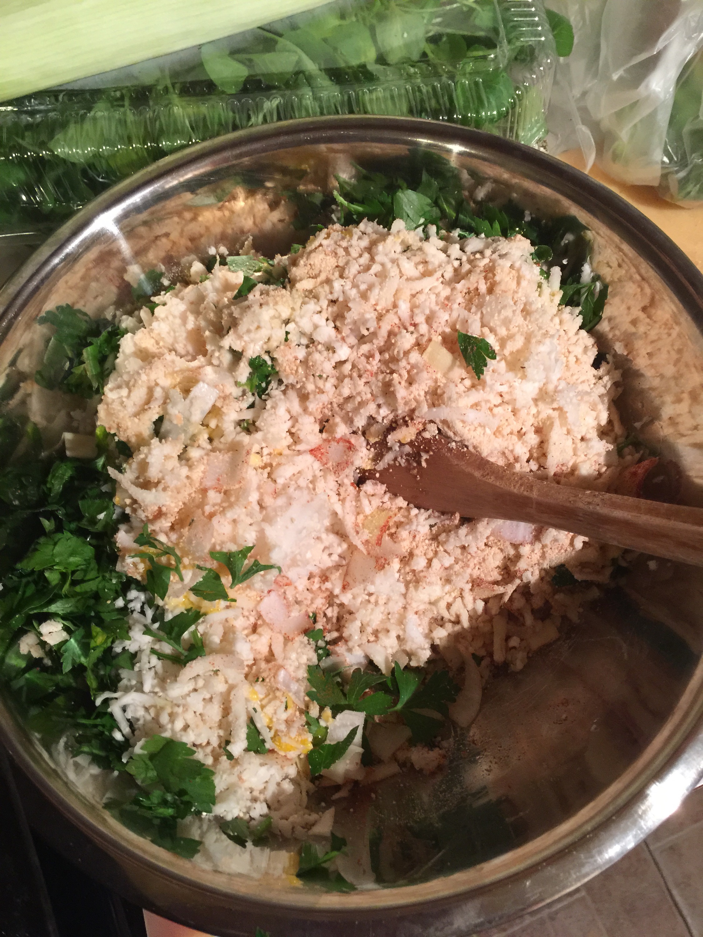 Today’s inspiration was a recipe featured on the farm fresh to you Website….and I didn’t follow it (maybe I should have)….grate a whole head of cauliflower
