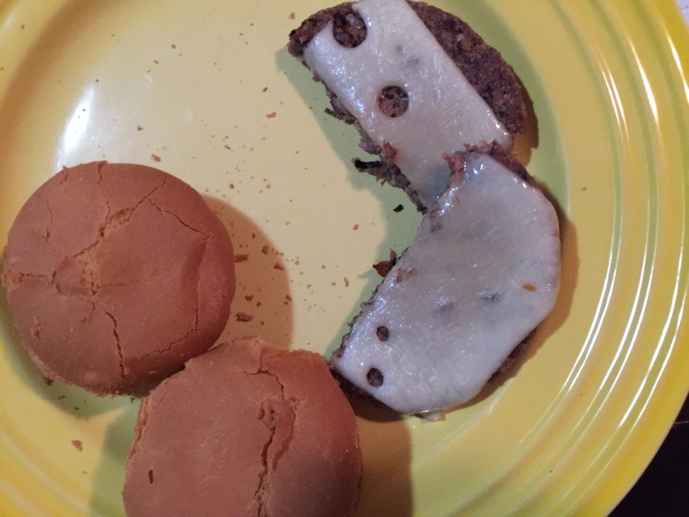 I added two eggs (should have been one egg and a little water), a little tvp to stretch it (wasn’t a ton left in the bag), fresh sage, Penzeys mural of flavor, marjoram and let it rest. Patties it became!