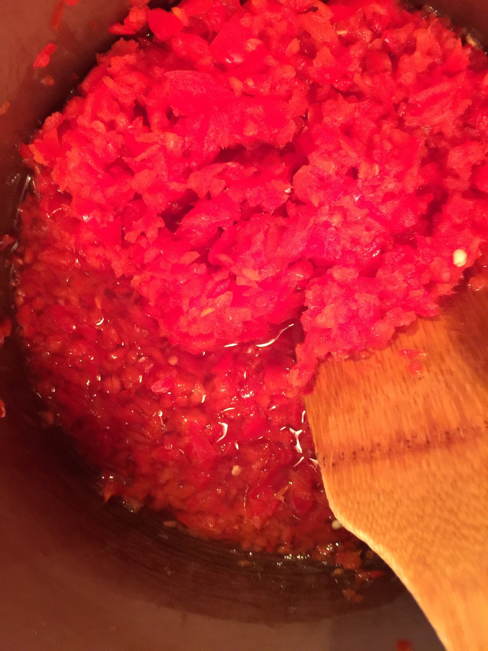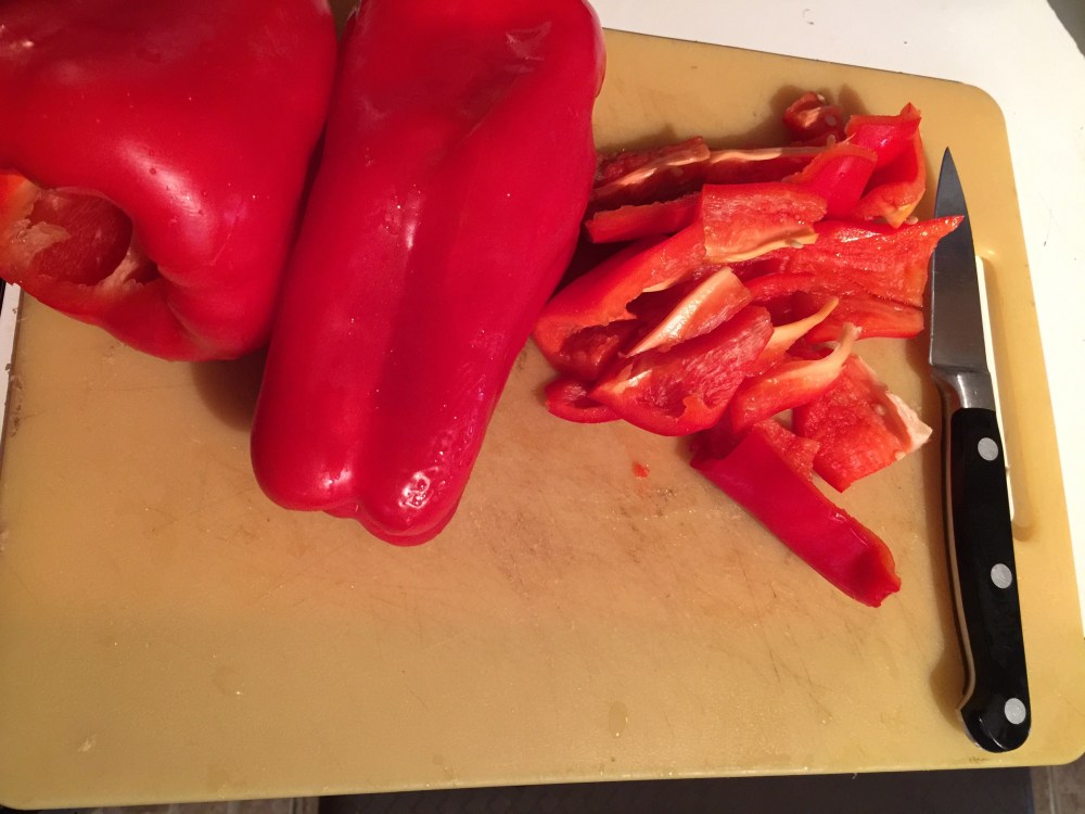 Next i start the peppers , garlic and ginger