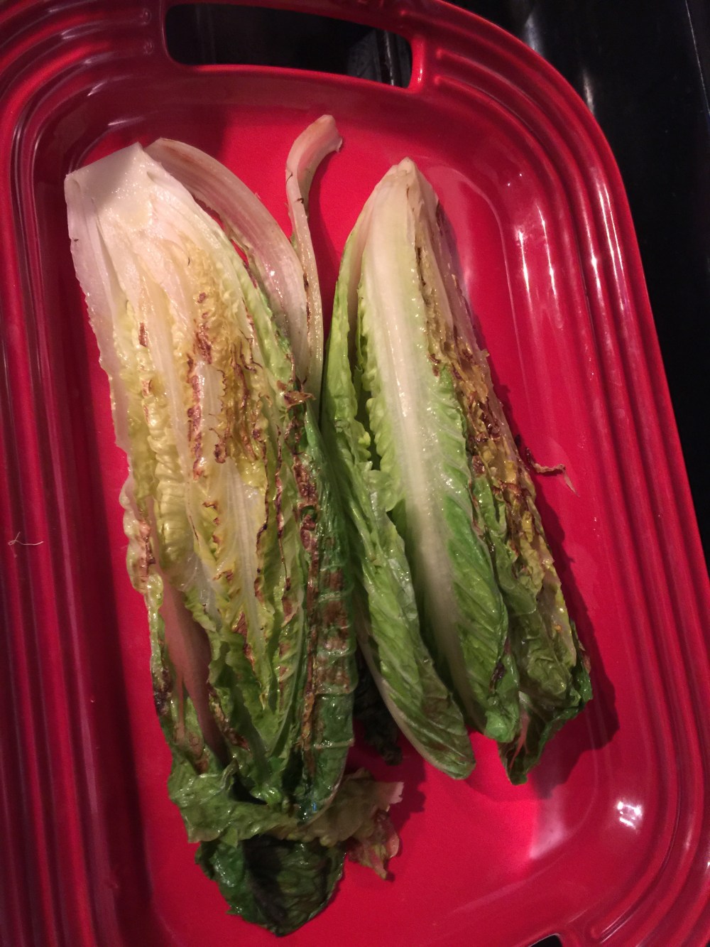 Here is my mise en place for this email inspired idea…romaine, parmesan, homemade dressing, smoked blue cheese, tomato, avocado, bacon, garlic, radish, shishito (that i grew!), cucumber….i took like 4 pictures because this has the red pepper that i removed but didnt have the egg i added, etc