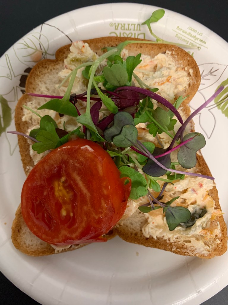 Here is my version with micro greens on top and a slice of homegrown tomato.