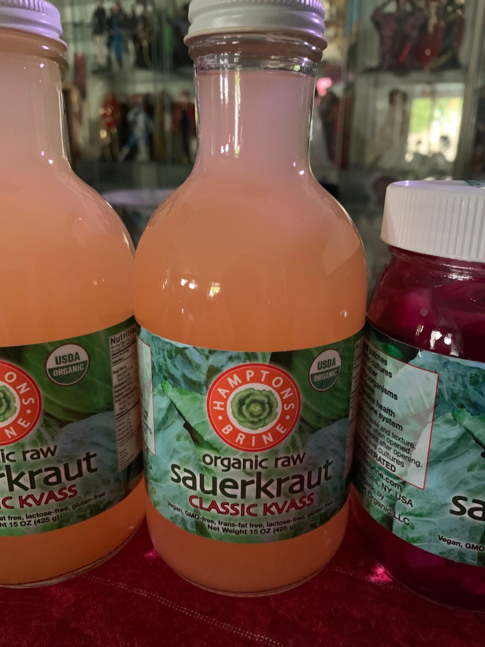 My sauerkraut kvass arrived from Hamptons Brine along with some jars of crunchy sauerkraut goodness