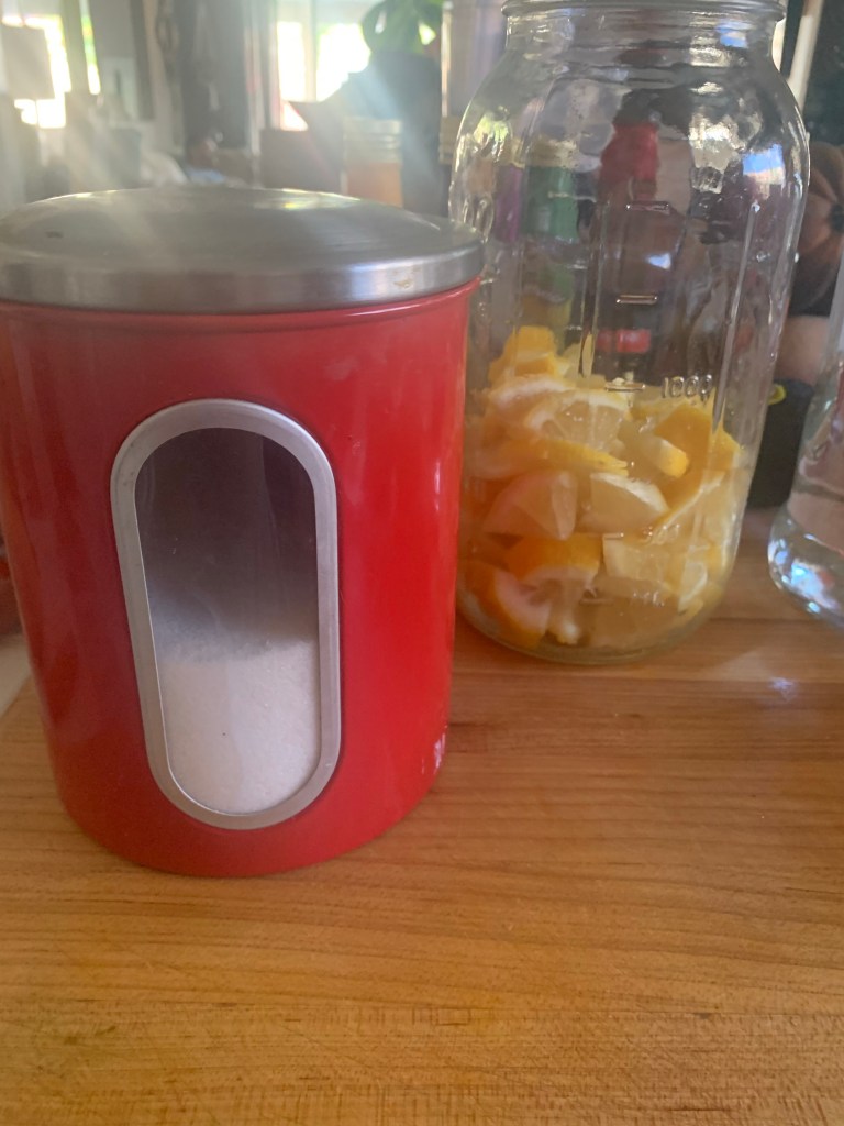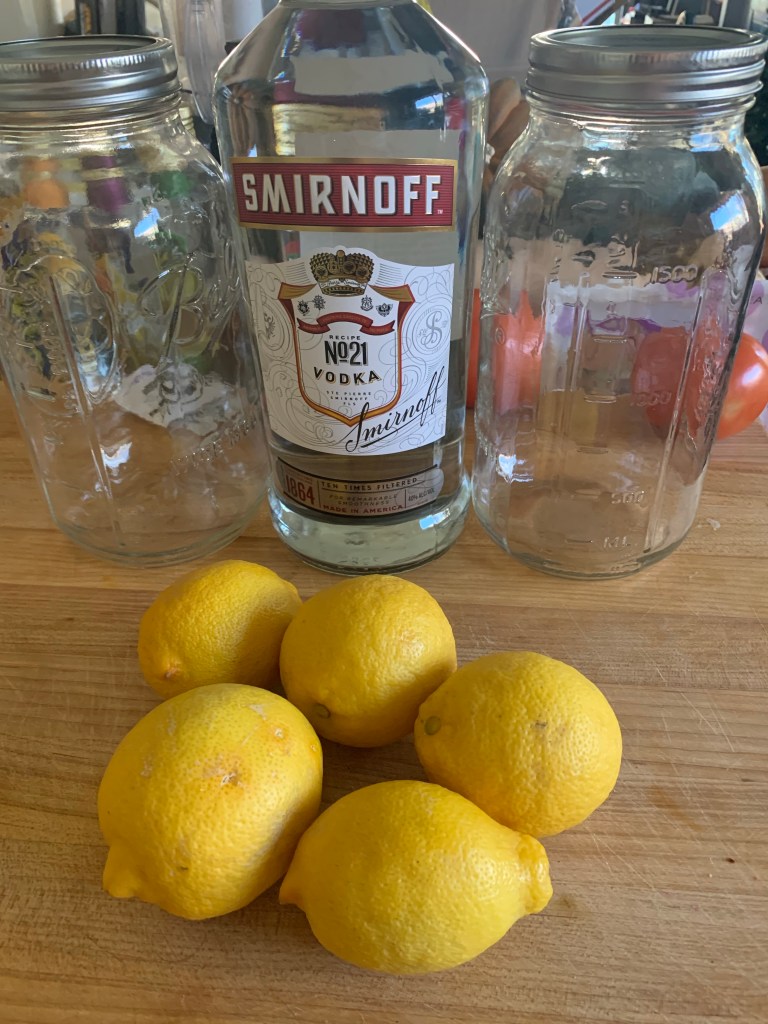 I have a pile of lemons at our new home…I had planned to make limoncello as I did with grapefruit at our old house. But I wasn’t feeling it. I hinted around online and made a conglomerate recipe…