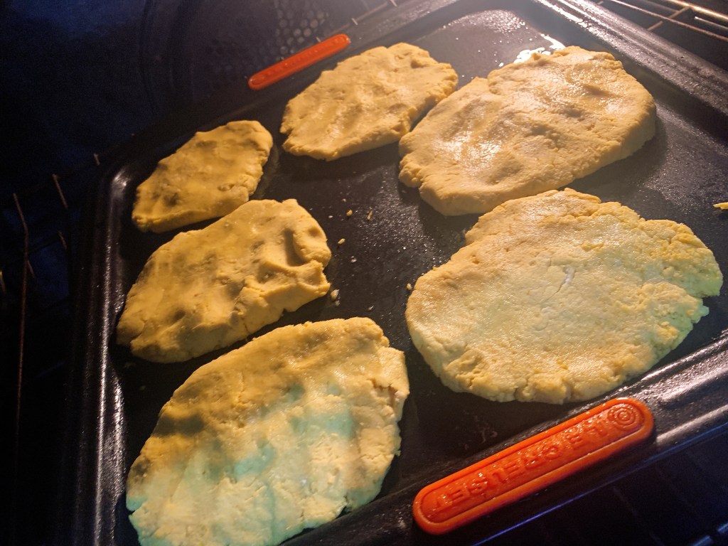 The arepas should come together like this
