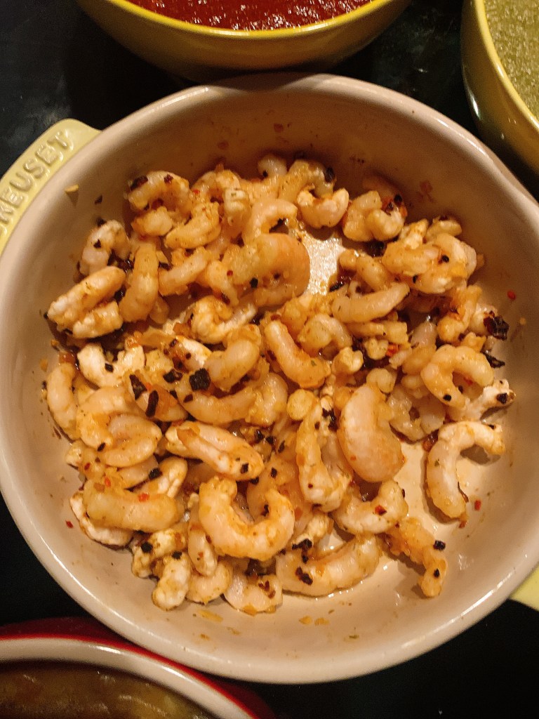 I wanted something extra so I grabbed some salad shrimp that got dressed up with chili and some lime juice