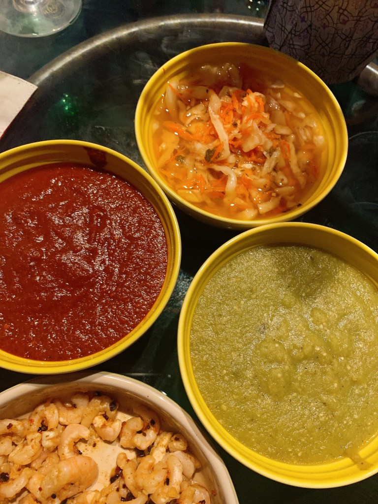 Roasted tomato, shallot, jalapeño, with garlic, rehydrated California peppers and Mexican oregano.
