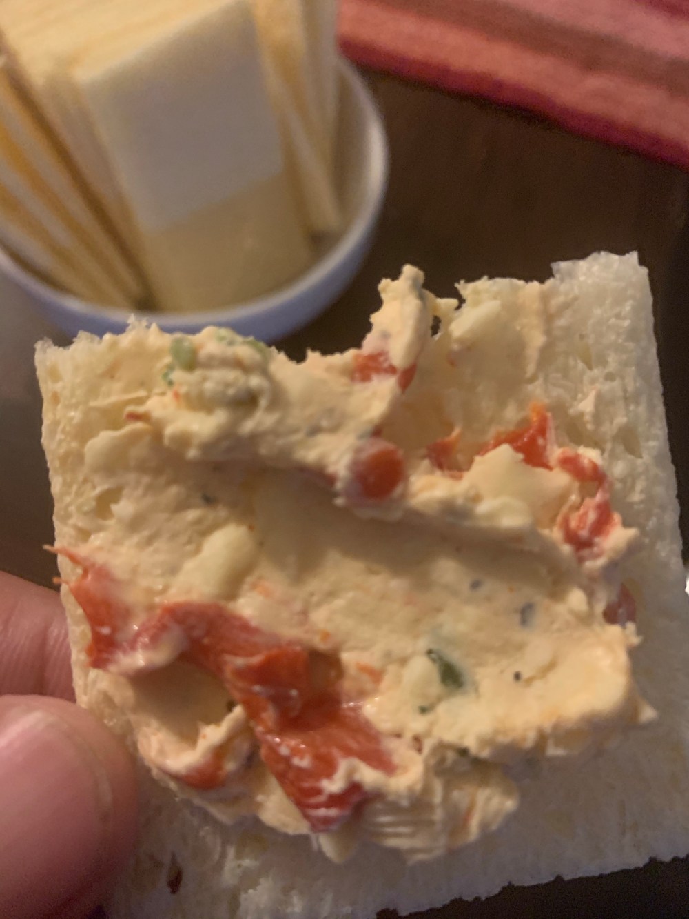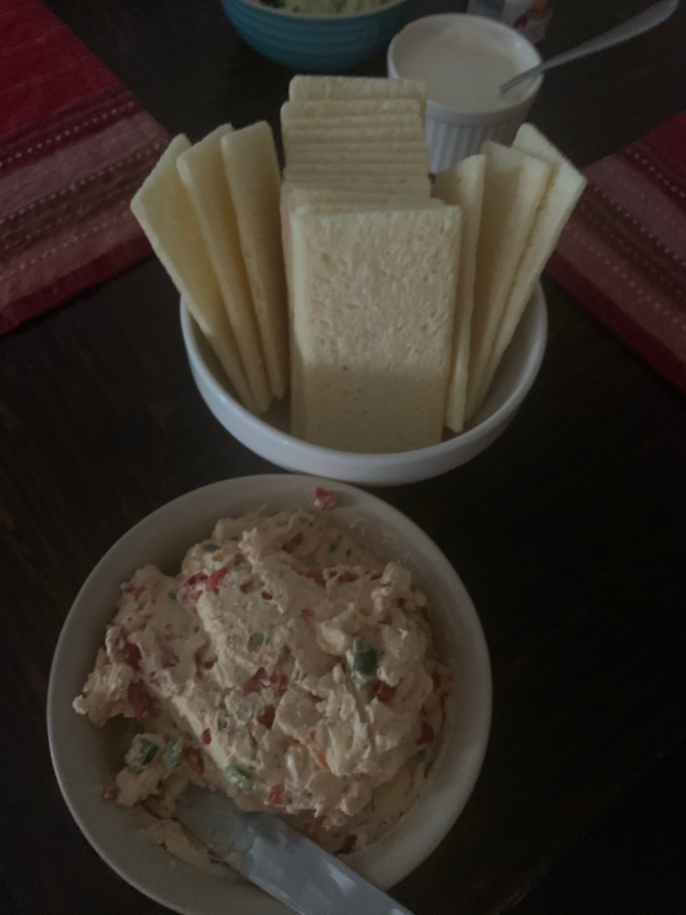 I was inspired today to make corn and crab cakes…because i had green tomatoes…so i also made some pimiento cheese as an appy.