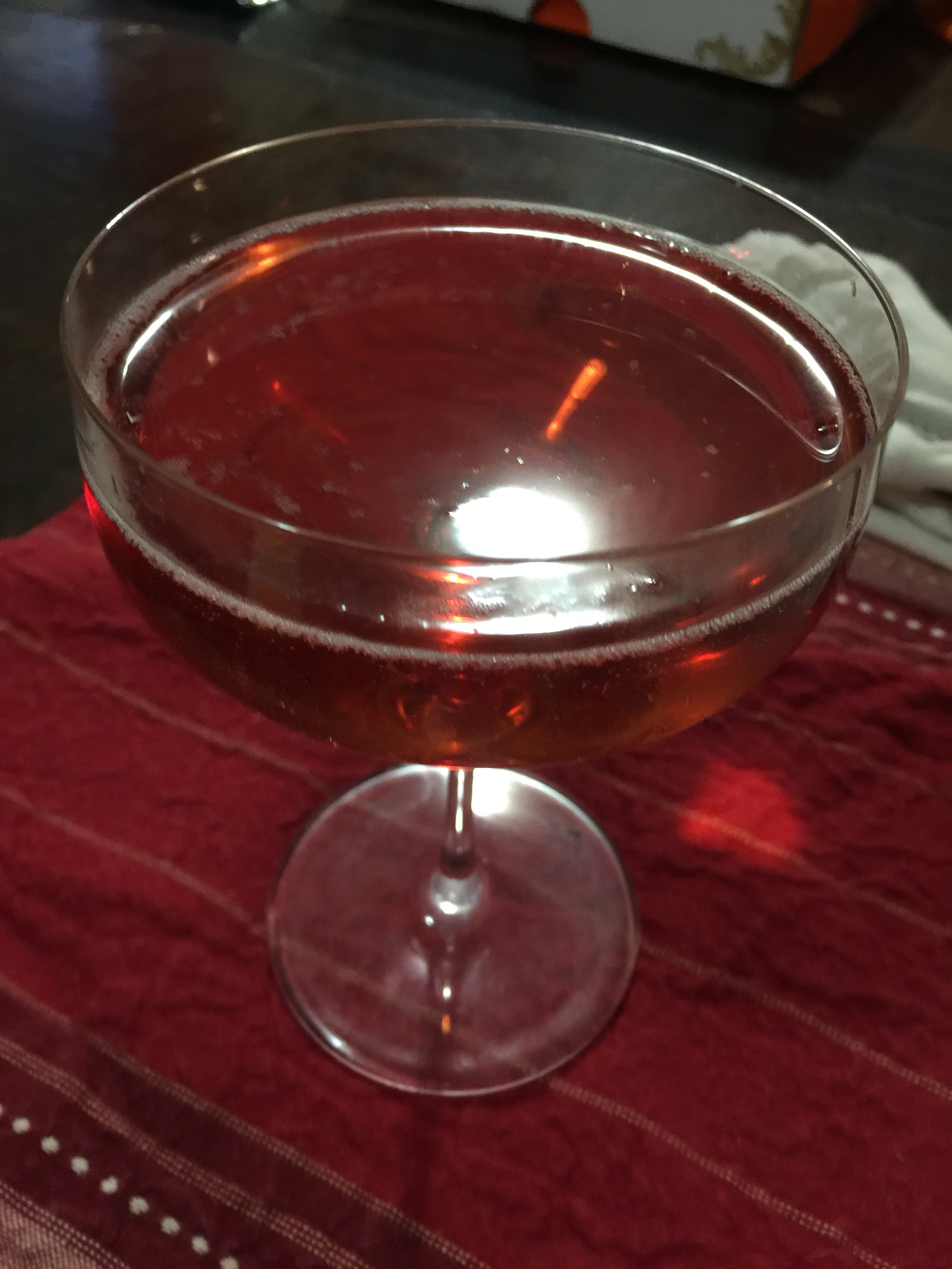 Tonights cocktail was bubbly rose with some Pama splashed in it.