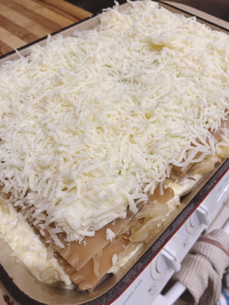 Then we add the final layer of noodles. And cover with cheese of choice.