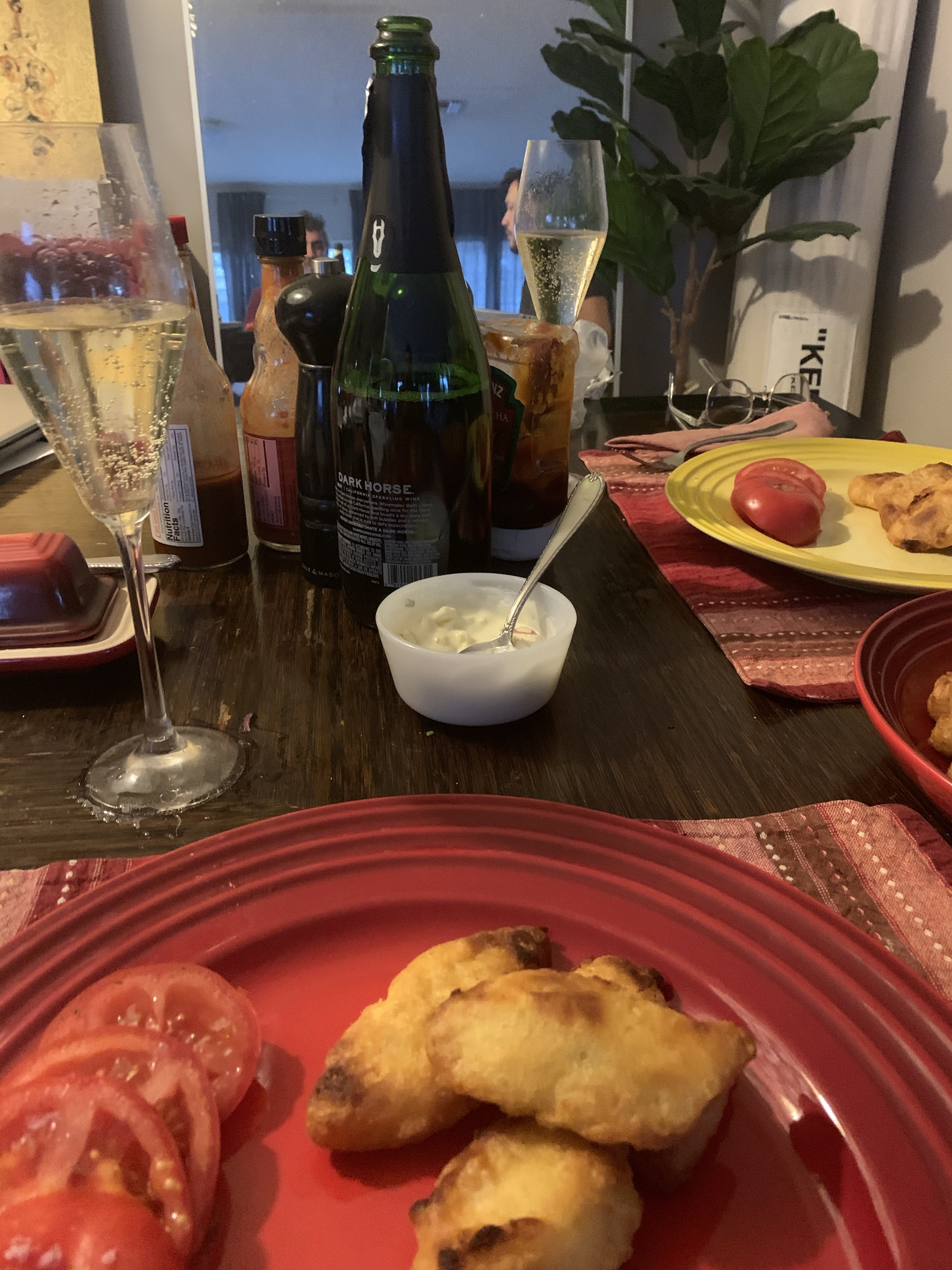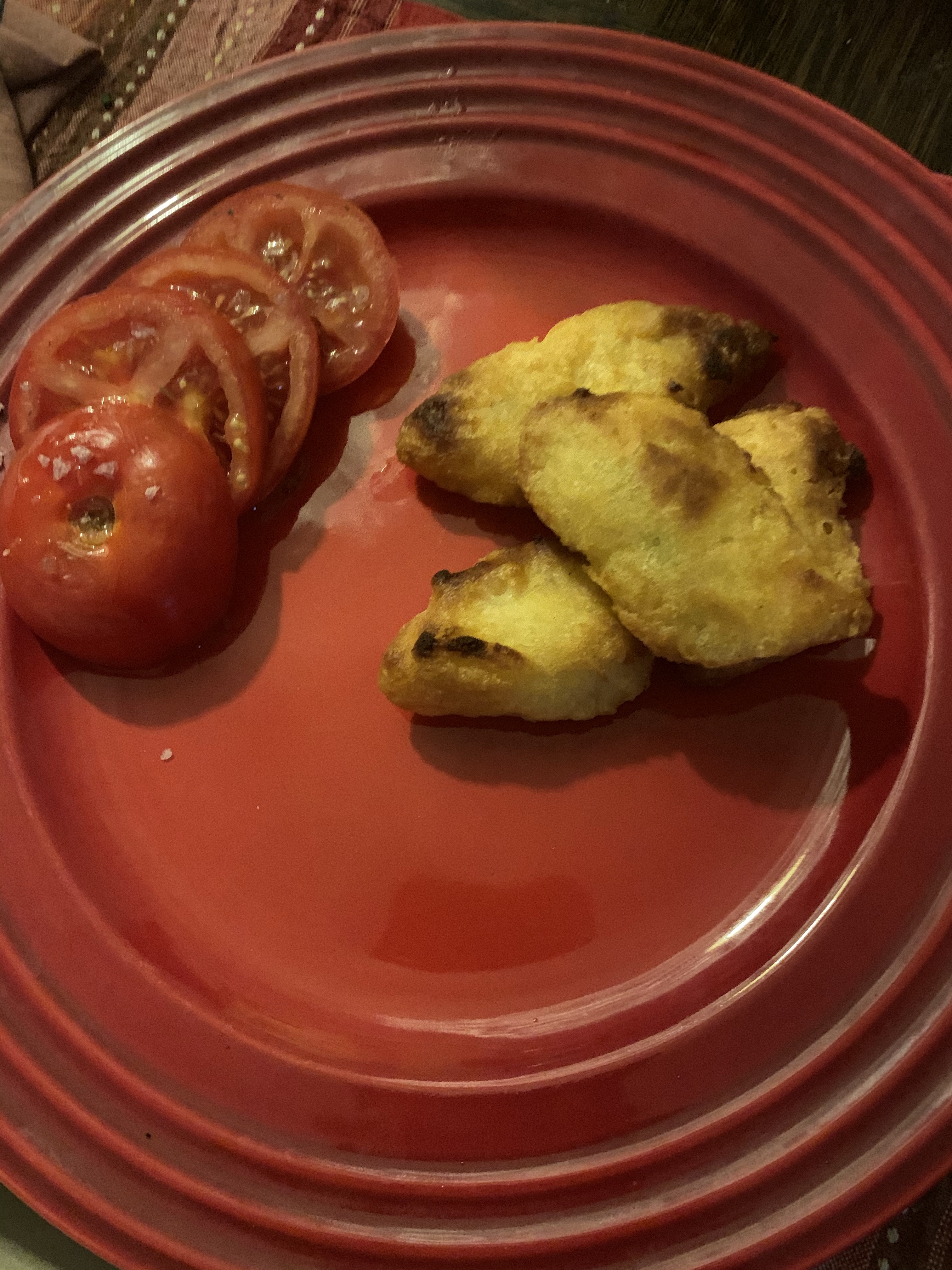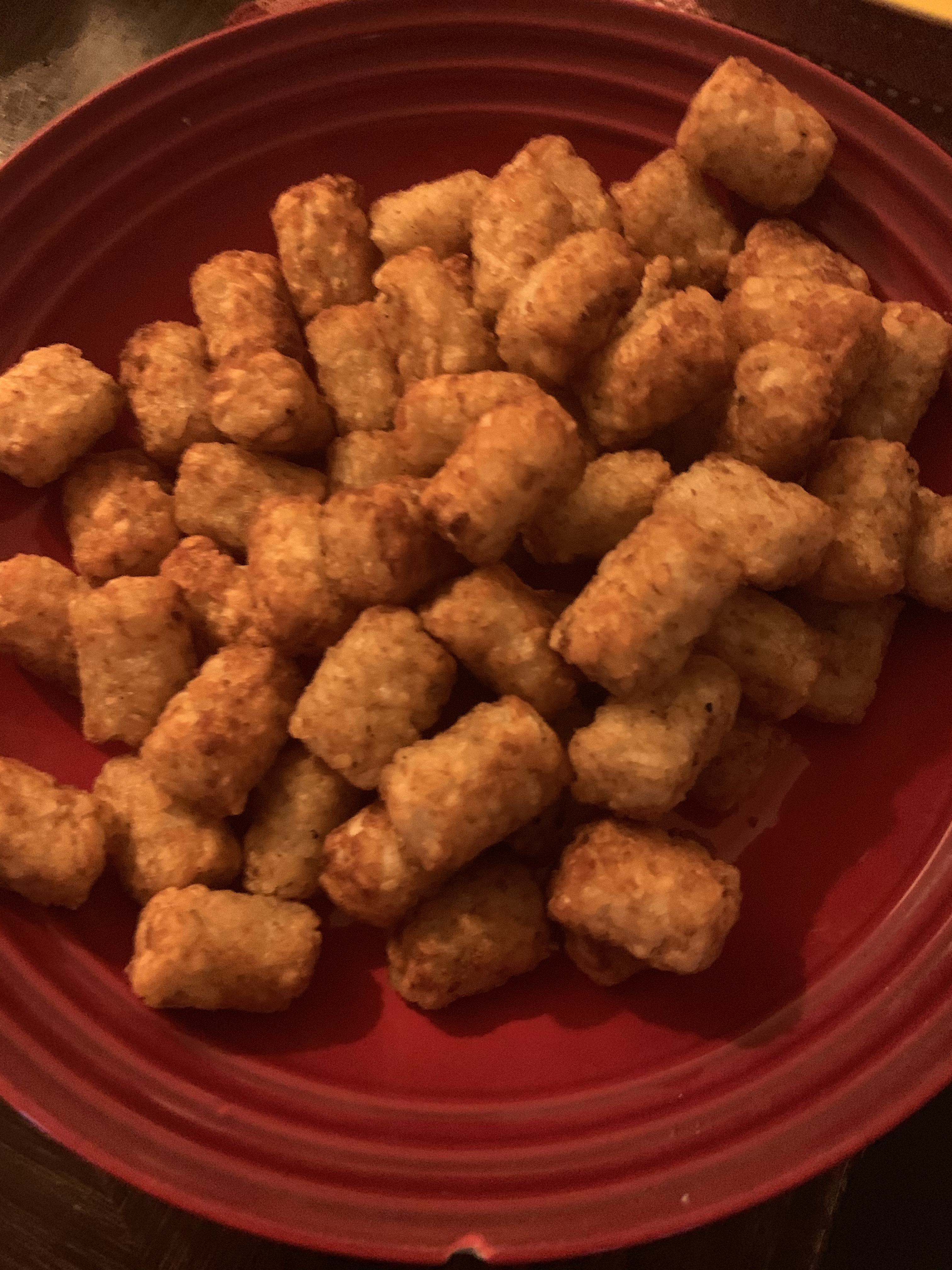 Well, i thought i had gas to make it home, but just near my exit we ran out and had to wait for AAA …plus i needed to straighten up as the appraisal for the refi is tomorrow…so we ended ip with air fried tots, gluten free air fried cod…and our health dinner commenced!