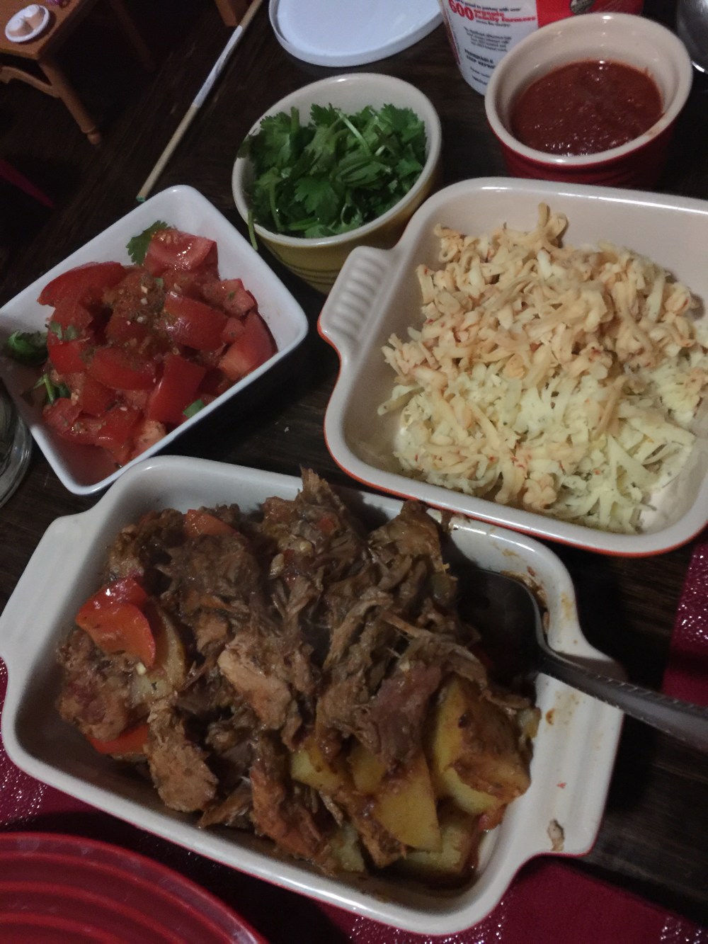 So yesterday’s slow grilled pork butt went latin today…