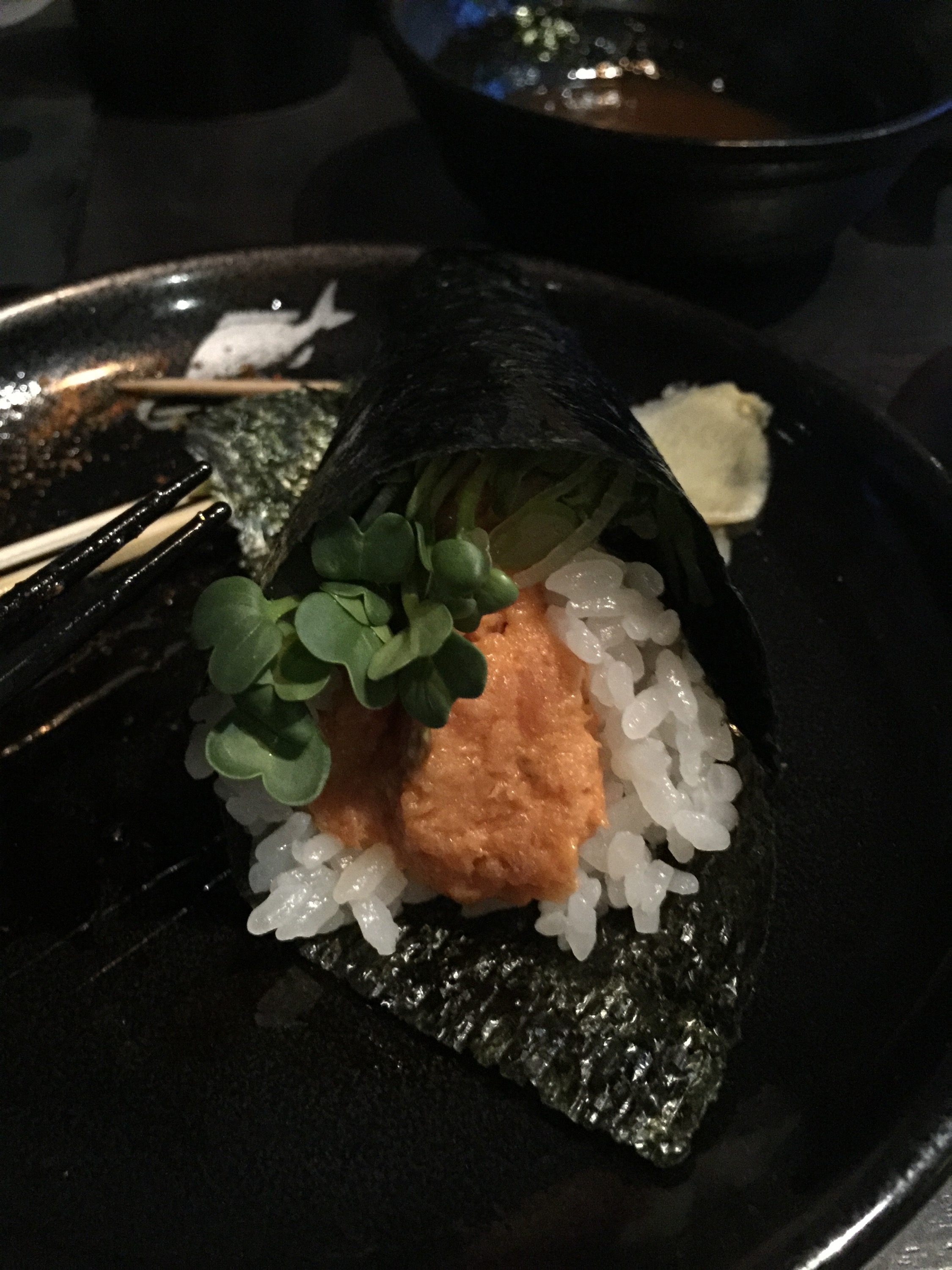 my mother was in town two weeks ago and we usually hit sushi during her trips since she lives in the sushi desert…gyoro gyoro is a place we have tried in Palm Springs and now they have a location near us (they have 150 locations in Tokyo). They have a great happy hour DAILY until 6:30 and a yelp coupon for 5 bucks off EVERY 25 spent. So we raced home to pick her up and hit happy hour pricing . Gyoro-gyoro