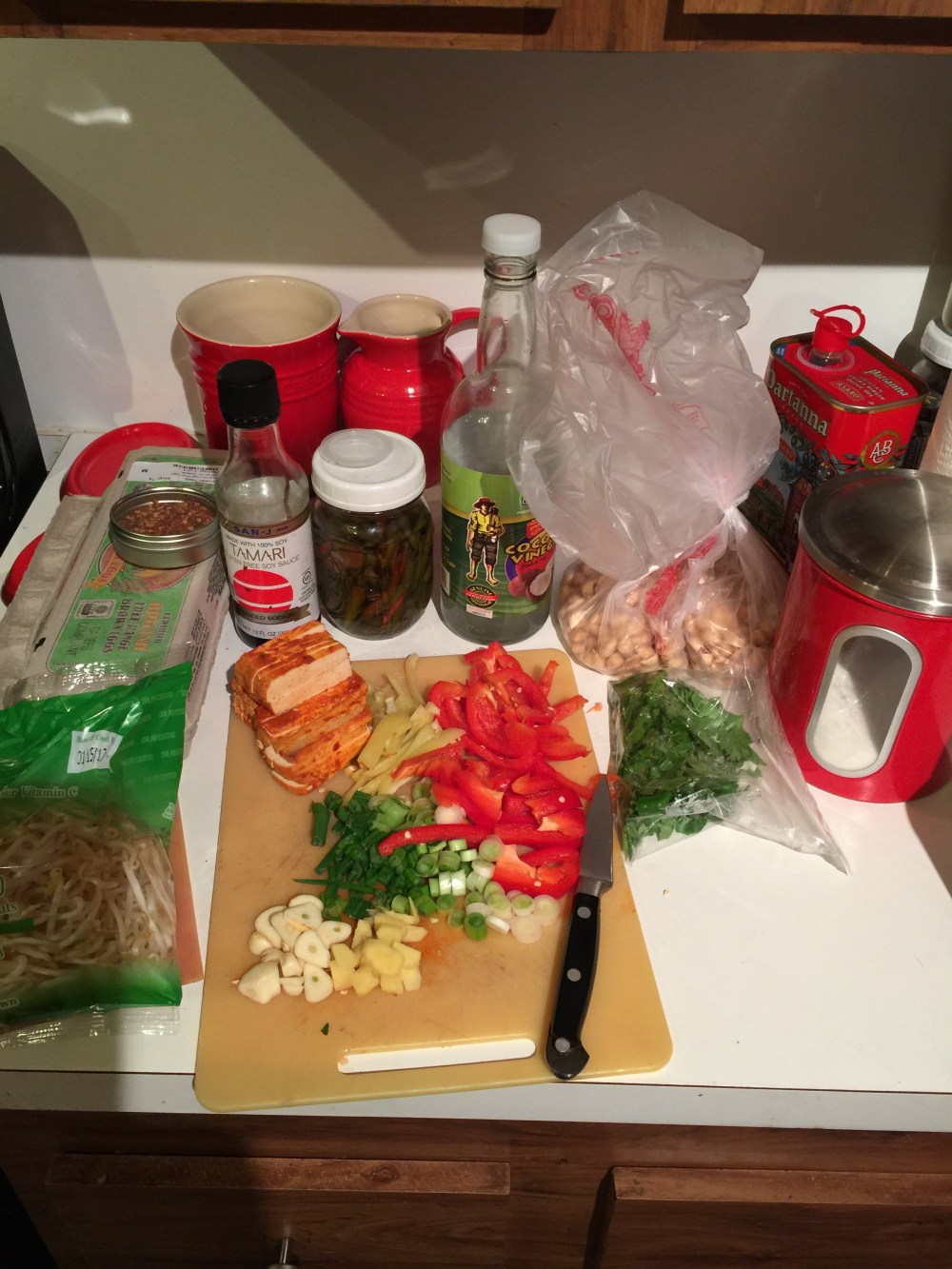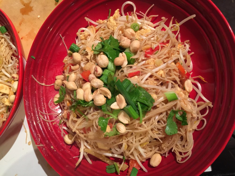 I was planning to make a rice dish out of pulsed cauliflower…i did buy the cauliflower, but while shopping, i was consumed by the idea of pad thai fried rice made with the cauliflower. I bought ingredients for my pad thai and returned to work. The idea didnt sound so hot by the time i got home but i had brown rice thai noodles in the cabinet…